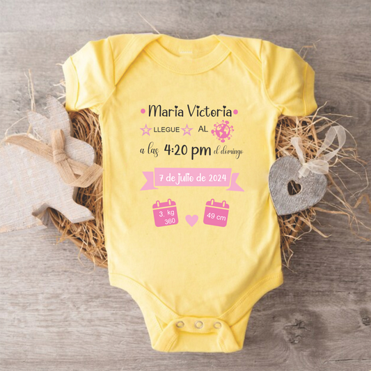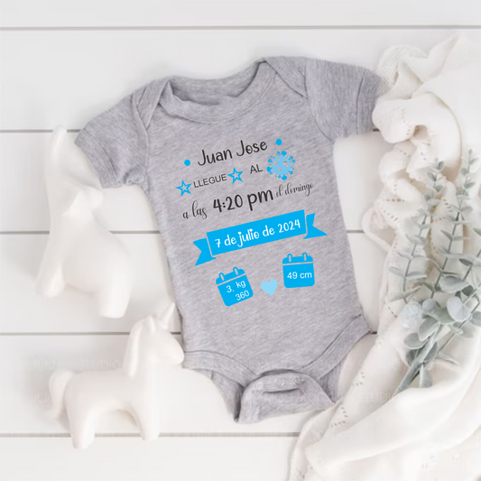 Body Mameluco bebe datos de nacimiento niño personalizado