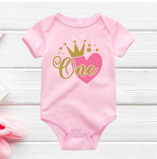 Body Mameluco niña primer cumpleaños corazón one